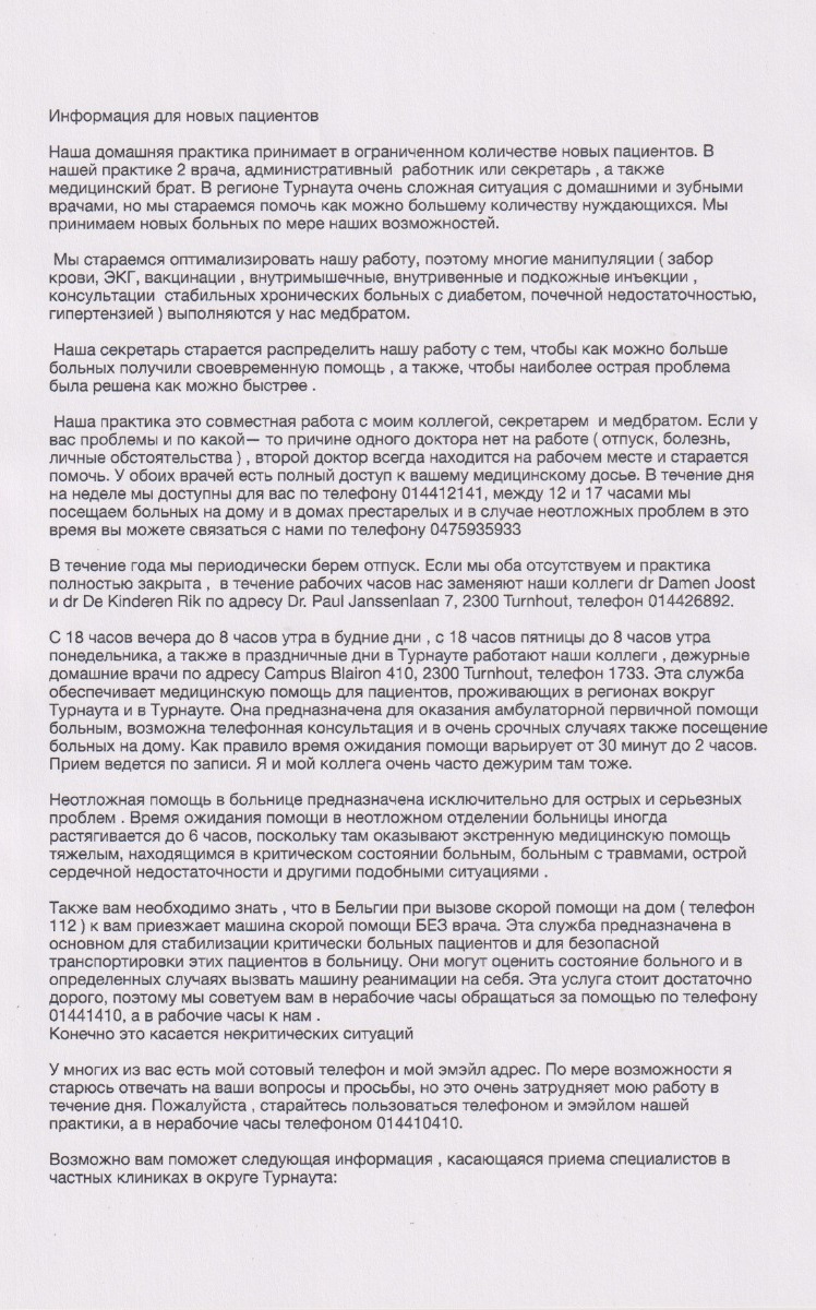 Wij zijn gedeconventioneerd. ( Dwz dat wij niet akkoord gaan met een aantal voorstellen van de overheid ). Onze TARIEVEN zijn daarom iets hoger dan in sommige omringende streken.( Zie ook rubriekje ' praktische info').